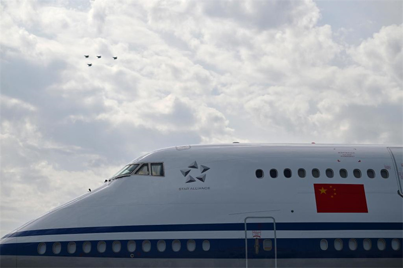 Chinese President Xi Jinping leaves for Beijing after attending the second China-Central Asia Summit in Astana, Kazakhstan, June 18, 2025. Upon Xi's departure, Kazakh President Kassym-Jomart Tokayev and other senior officials saw him off at the airport. On the way to the airport, representatives of Chinese enterprises and Chinese overseas students lined the streets, waving the national flags of China and Kazakhstan to warmly congratulate Xi on his successful attendance at the summit. [Photo/Xinhua]